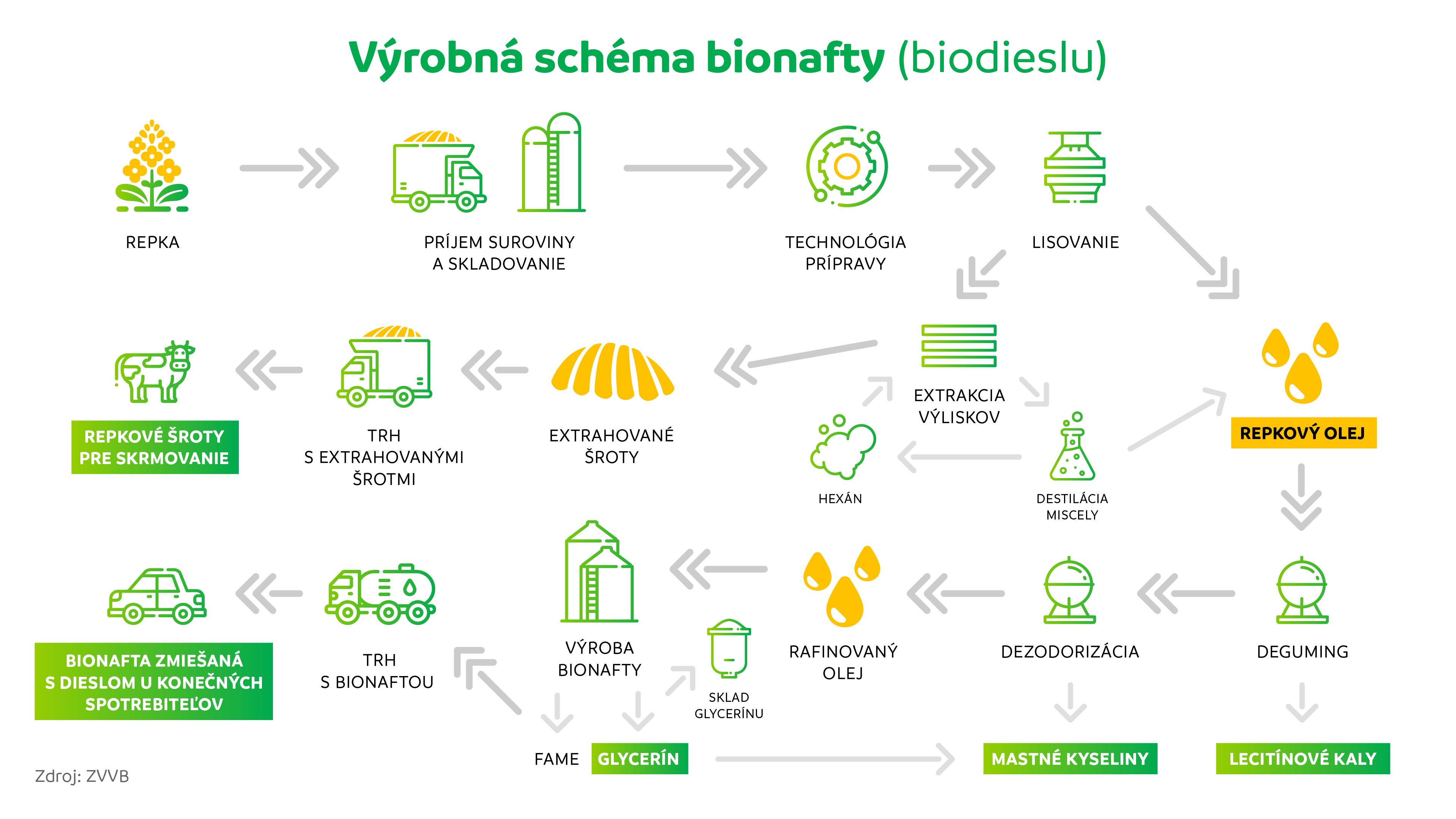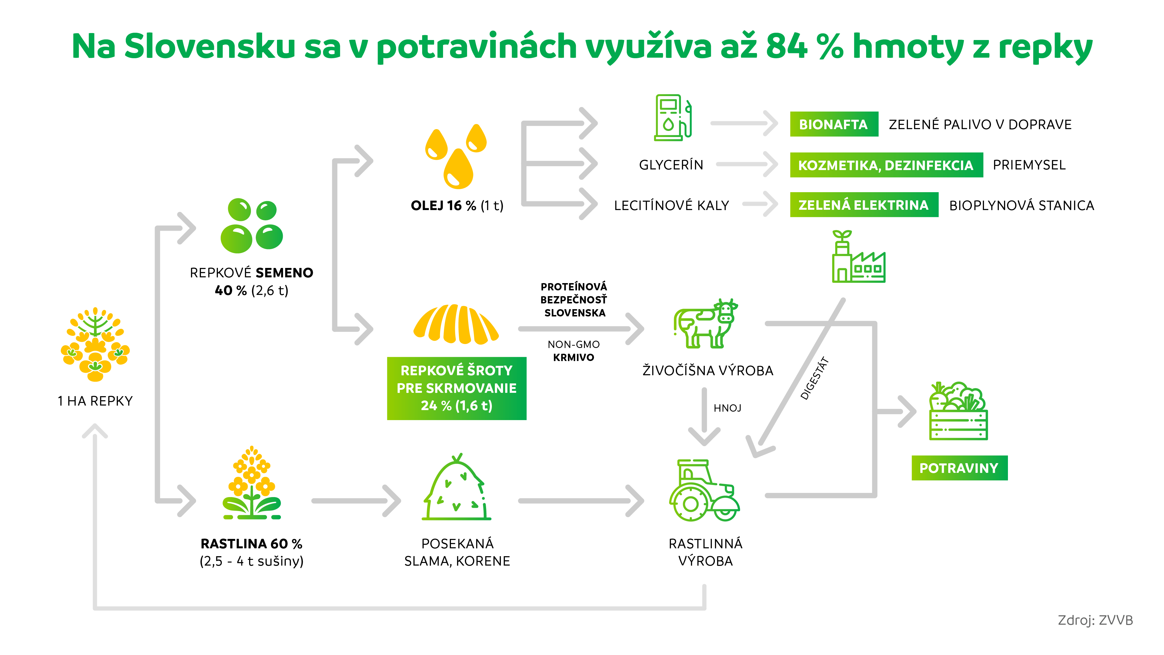 Na výrobu bionafty sa používa len časť obsahu repky. Po vylisovaní oleja zostáva zo spracovanej hmoty viac ako 50 % repkových šrotov (s vysokým – až 35 % podielom bielkovín). Takto lokálne produkovaná kŕmna surovina (vďaka vyváženému pomeru živín je vhodná pre všetky hospodárske zvieratá) dokáže efektívne nahrádzať dovážené (zväčša GMO) sójové šroty. Je málo známe, že práve výroba biopalív sa takto, výraznou mierou podieľa na proteínovej bezpečnosti EÚ. Zároveň tu treba podotknúť, že prebieha aj dôležitý výskum možnosti využitia týchto bielkovín aj v humánnej výžive.